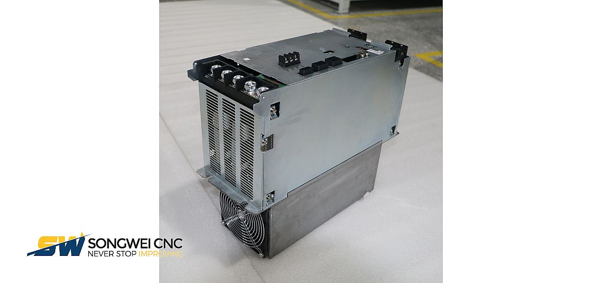 A Okuma MPS45A é uma fonte de alimentação CC com regeneração de energia para sistemas de controlo de movimento Okuma (MCS/MCSII). Potência nominal de saída contínua: 45 kW (60 cv). Entrada: CA trifásica 200–220 V; saída: barramento principal CC 300 V + alimentação de controlo CC 24 V. Possui regeneração de energia via IGBT, alhetas de dissipação de calor, ventoinhas de refrigeração externas/internas e comunicação por ligação de conversor com inversores MIV. Suporta barramento CC partilhado para múltiplos servo-acionamentos/drivers de fuso em máquinas-ferramenta CNC de precisão.